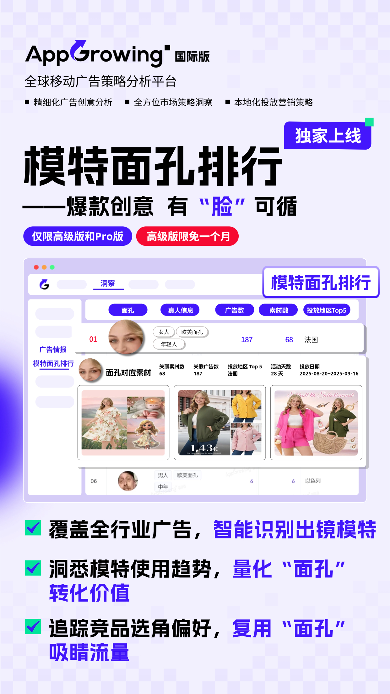 模特面孔排行独家上线!爆款创意,有“脸”可循!