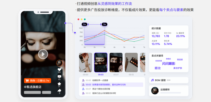 场景化应用示例:例如,一位美妆品牌运营者可以通过有米有数发现,某款“素颜霜”在近一周内通过“熬夜党急救”这一场景切入,关联的短视频素材点赞数据飙升。平台能进一步展示所有相关爆款视频的黄金前三秒脚本、出镜模特特征、核心营销卖点,为内容团队提供直接的创参考。