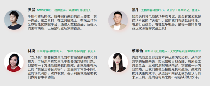 行业顶级操盘手们也倾情推荐,如尹晨、黑牛等均指出,在内容电商时代,有米云的工具已成为提升选品精准度和素材爆发力的“必备武器”。