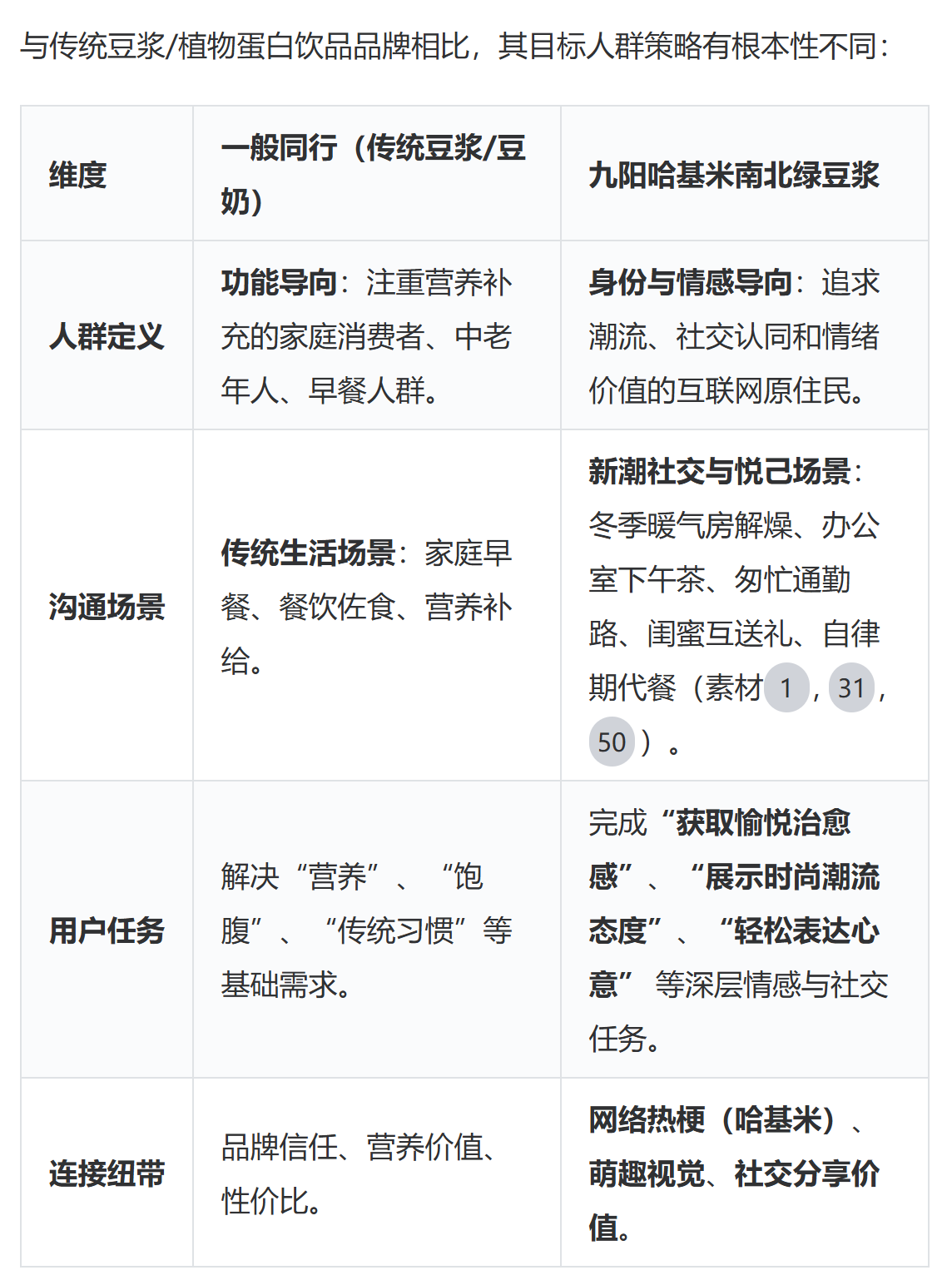 但有个很好的例子,元气森林靠日系无糖聚焦年轻减脂人群,从小众火到大众;同样,九阳靠哈基米梗锁定Z世代,也实现了圈层渗透。