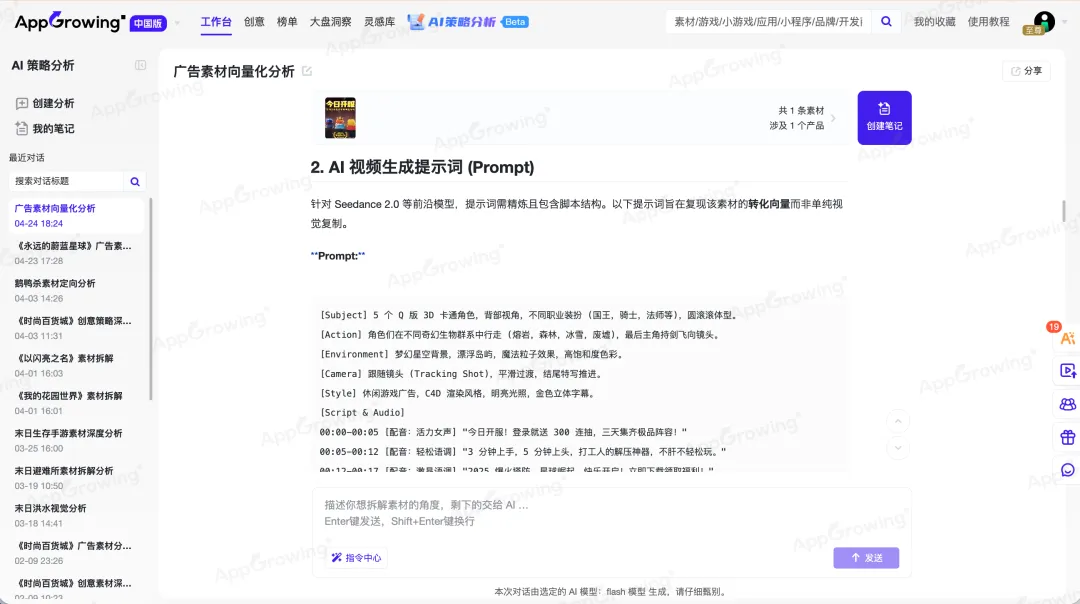 实际操作真的就是有手就行,没有夸张成分。在 AppGrowing 这里 2 段提示词帮你搞定!也不用在几个 AI Agent 之间反复横跳地生成。