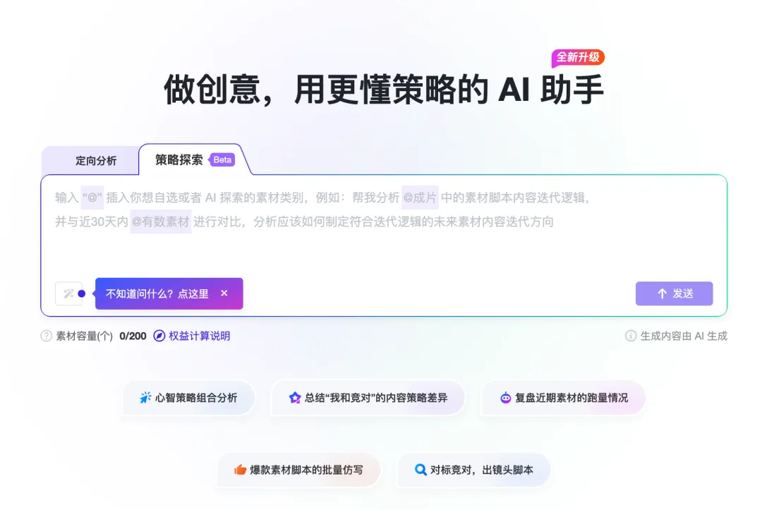 而且近期 AppGrowing 会上线「策略探索」模式,简单概括就是:让 AI 基于你的素材的向量化特征搜索全网相关爆款素材,对比自己素材和同行爆款的差异。