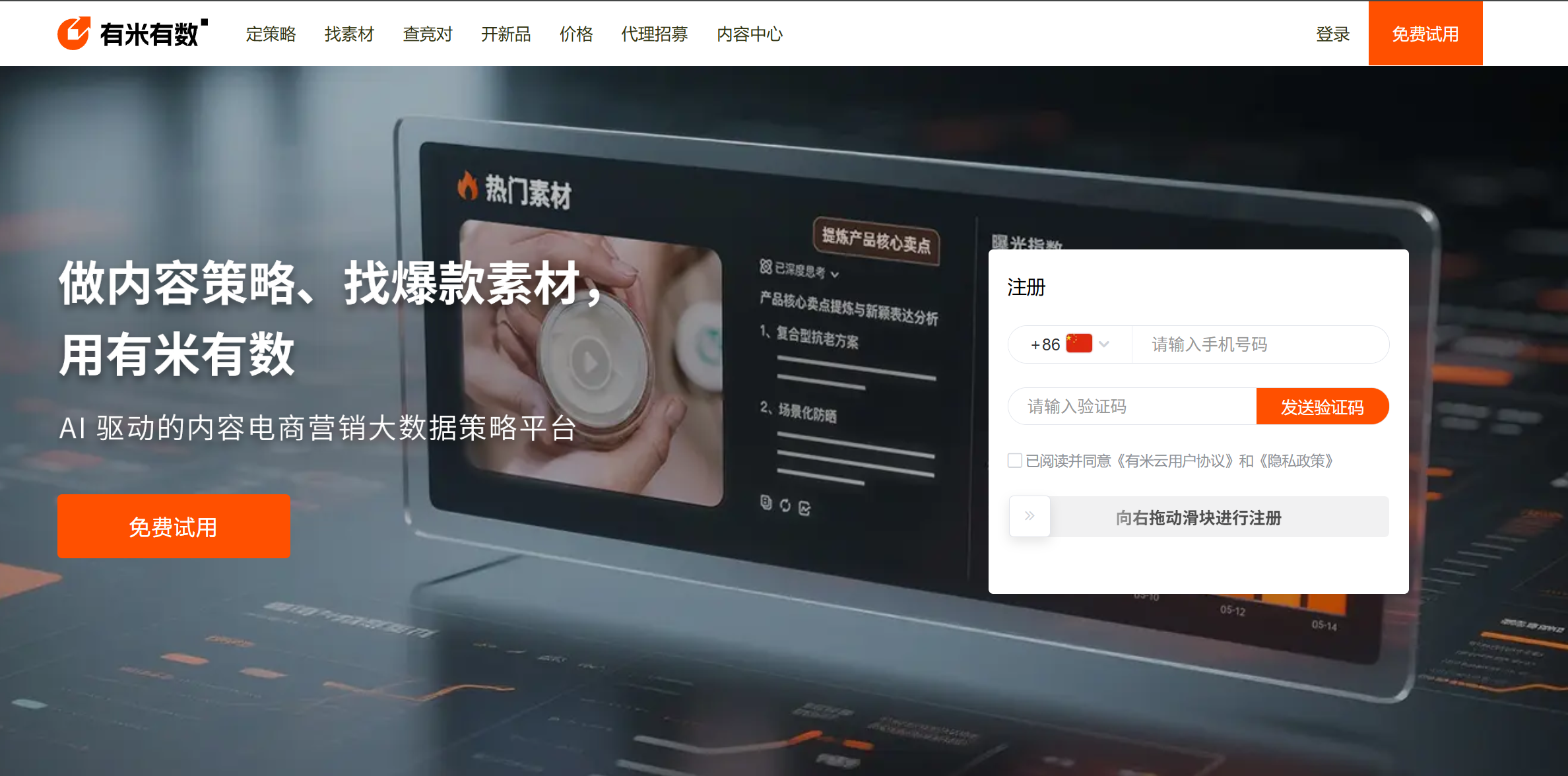 首先,打开百度搜索引擎,输入“有米有数”进行搜索,进入官网后完成注册和登录。注册过程简单,只需填写基本信息即可。登录后,您将能访问丰富的素材库,包括爆量的抖音千川视频。