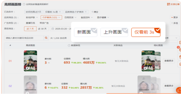 3.查看精准的商品榜单或素材库。