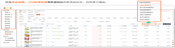 这是选品的核心功能。平台提供多维度电商选品榜单(如24小时新增销量榜、选品指数榜),帮助商家快速发现正在起量的潜力爆品,告别盲目选品。