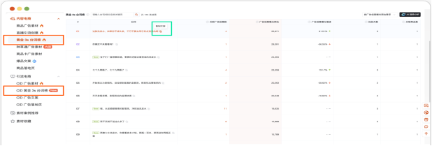 素材是内容电商的燃料。该模块提供了海量的千川广告素材库,并利用AI能力进行深度拆解: