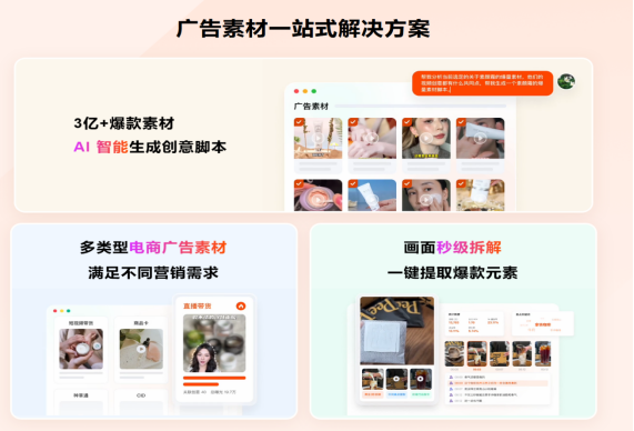| 蝉妈妈 | 中小商家:• 基础素材参考:查询近期同类商品爆量素材• 简单数据监控:跟踪核心素材的曝光转化数据• 新手入门工具:快速了解千川素材基本套路 |